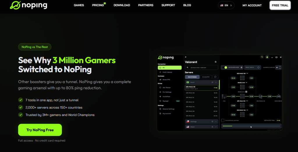 NoPING is a specialized gaming VPN designed to improve online gameplay by reducing lag, stabilizing connections, and lowering ping times. Unlike traditional VPNs that focus mainly on privacy, NoPING uses optimized routing technology to connect players to game servers through the fastest possible paths, which can significantly enhance performance in competitive or fast-paced games. It supports a wide range of popular titles and offers features like real-time ping monitoring, server selection, and multi-route optimization. With its user-friendly interface and focus on gamers’ needs, NoPING is a practical solution for players looking to minimize latency issues and enjoy smoother, more responsive online gaming experiences.